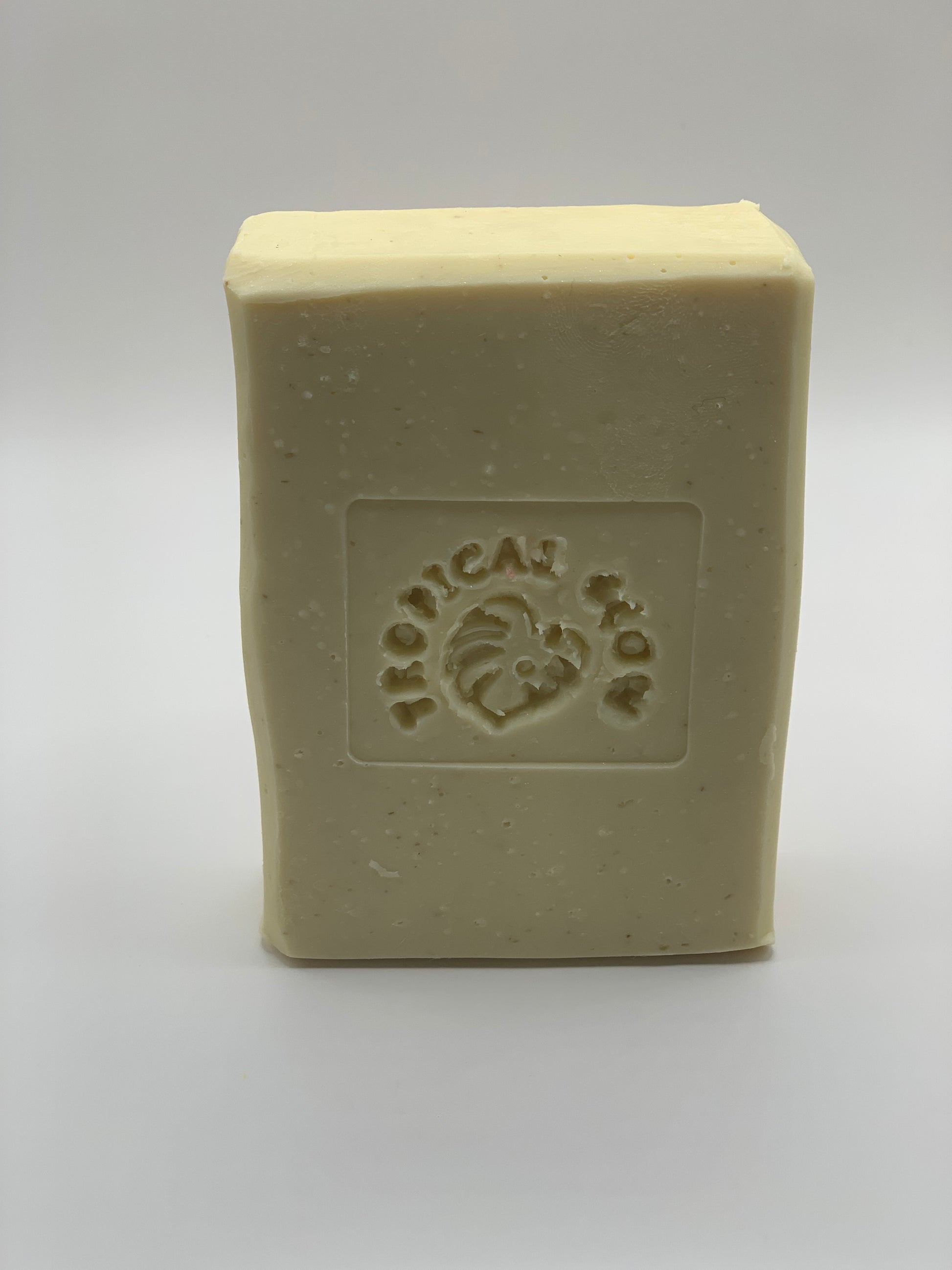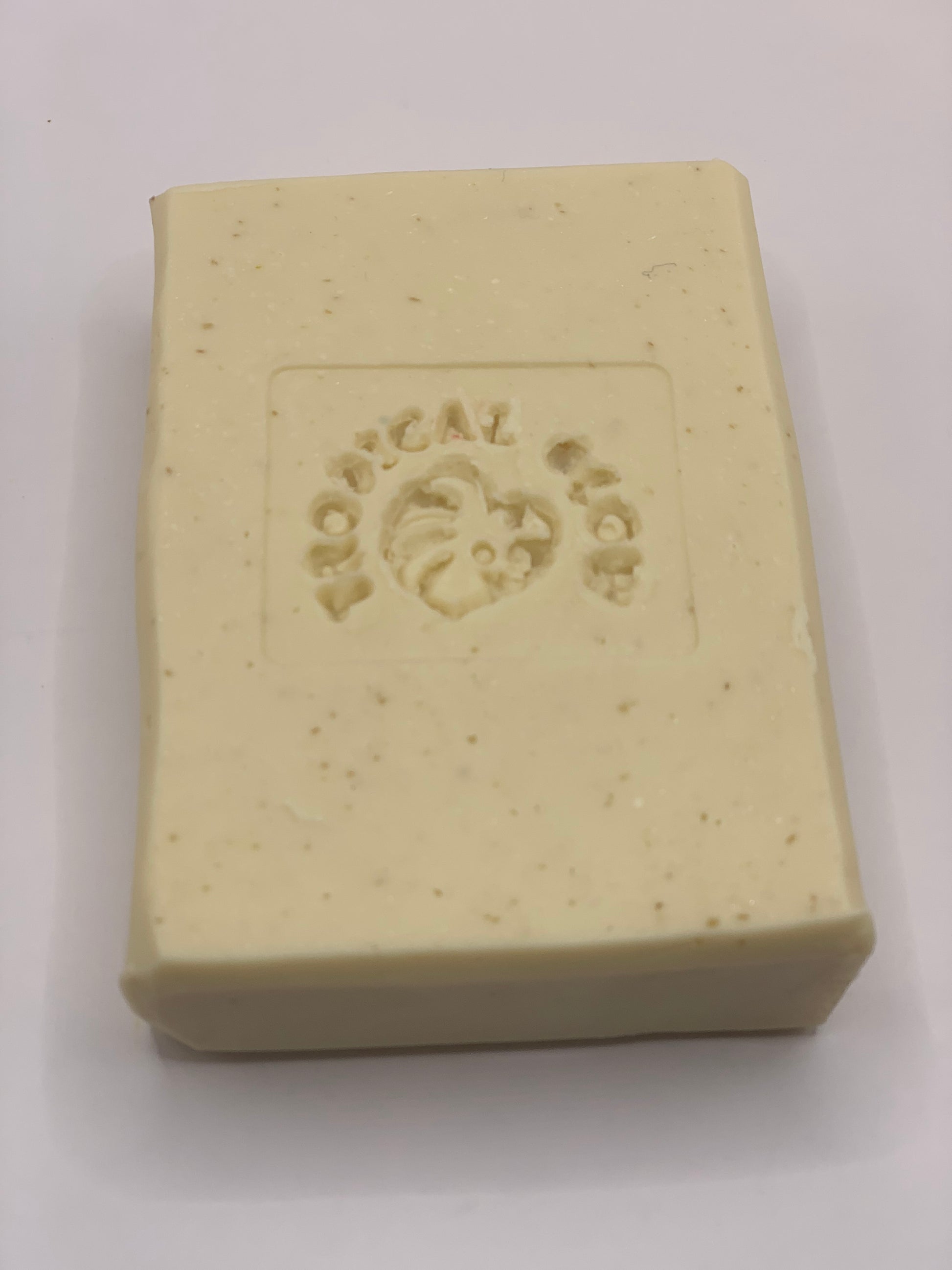 Ingredients: Saponified of rice bran, olive, coconut, babassu, kukui nut, and castor oil, shea butter, cocoa butter, kaolin clay, colloidal oats powder.